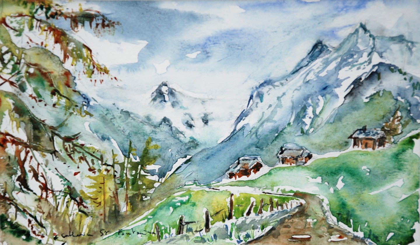 la dent blanche, vue de Farques ambiance printanière aquarelle